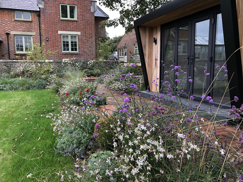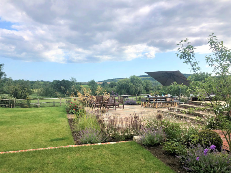 This listed house has been beautifully decorated and restored by the owners. From it's position on the side of the downs, they overlook the river at Amberley. Initially, the garden was overgrown and randomly planted, with deep dips in the lawns. The existing walls and steps were definitely worth keeping and our team of skilled landscapers restored the brick and stone-work. Because of the age of the property, we invested in cathedral york stone for the paving, with reclaimed bricks for the paths. Planting reflects the era of the property with old roses, lavender and herbaceous planting.