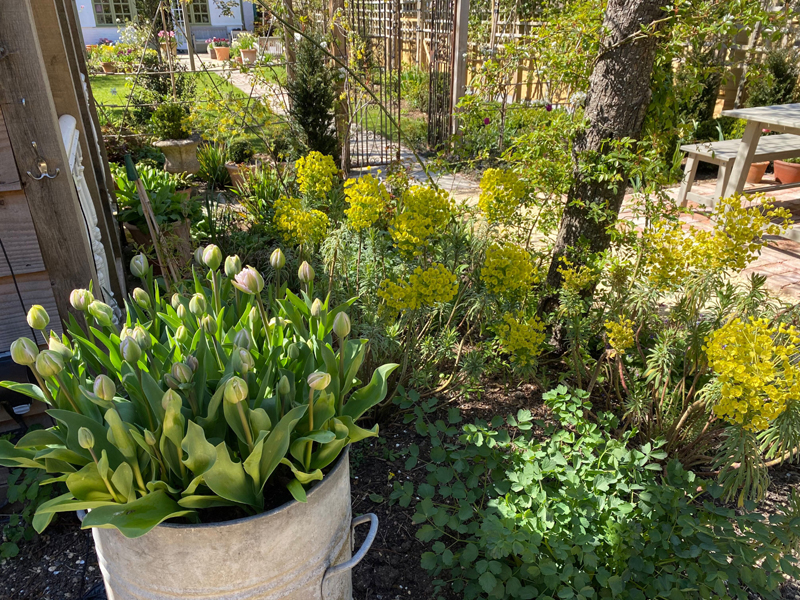 Nowadays our gardens are more like houses, with attention to detail and outdoor furnishings. Even the smallest garden can be an oasis. If you see something you like in a reclamation yard, then buy it. It will never be a bad decision, even if you're not sure where it's going. Fob off your partner by pretending you know exactly where you're putting it! I go for rusted gates and metal screens, large pots and urns, and old French windows. Keep pots simple for groupings. You can't beat old terracotta or something galvanised. If you're more of a contemporary gardener, then these materials still work and create an interesting juxtaposition to your modern decor, but choose simple, single colour pots and buy as large as you can afford. Apart from your borders, add seasonal planted pots: Daffodils, tulips and groups of Auriculas in Spring. Lavender, white and grey bedding in Summer, Cyclamen, Ivy and Pansies in winter.